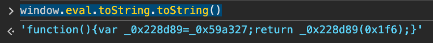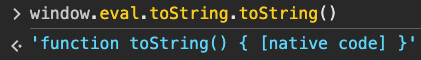 For example, if we pretend to be Safari in our browser profile, it overrides the eval function. The script takes care of overridden the toString of eval, but not the toString of the toString function itself. Thus, we can run the code snippet below to detect that it has been overridden.