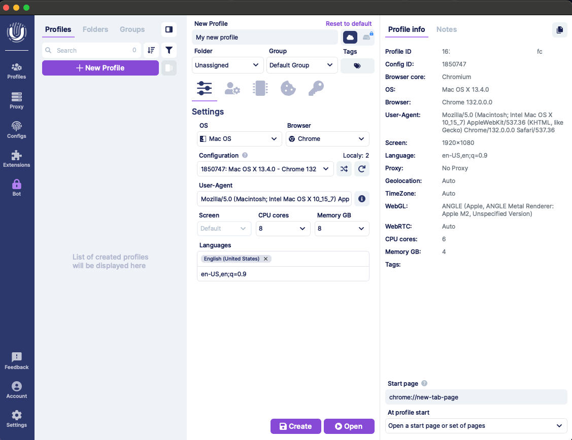 Undetectable, as most of the anti-detect browser, is organized around the concept of “profile”. A profile can be seen as a browser instance configuration.