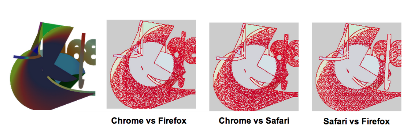 Similarly to canvas fingerprinting, WebGL fingerprinting leverages the WebGL API to draw a 3D image whose value also depends on the user device. The image below shows the output of a WebGL fingerprinting challenge.