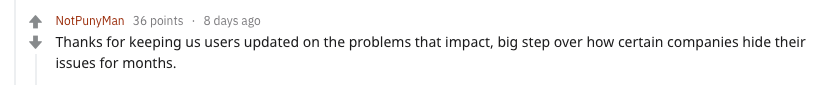 Reddit knew that its users deserved to know about the incident. This kind of post-mortem transparency is one of the keys to retaining their users in the long haul. Users themselves can find this honesty refreshing.