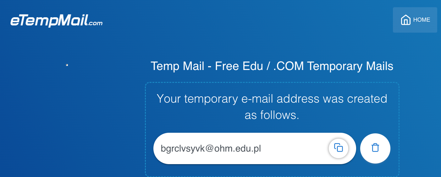 We routinely see the same tactic with fake educational domains. The example below shows a disposable email service issuing addresses that resemble academic emails, such as a fake ohm.edu.pl domain generated by a temporary email provider.
